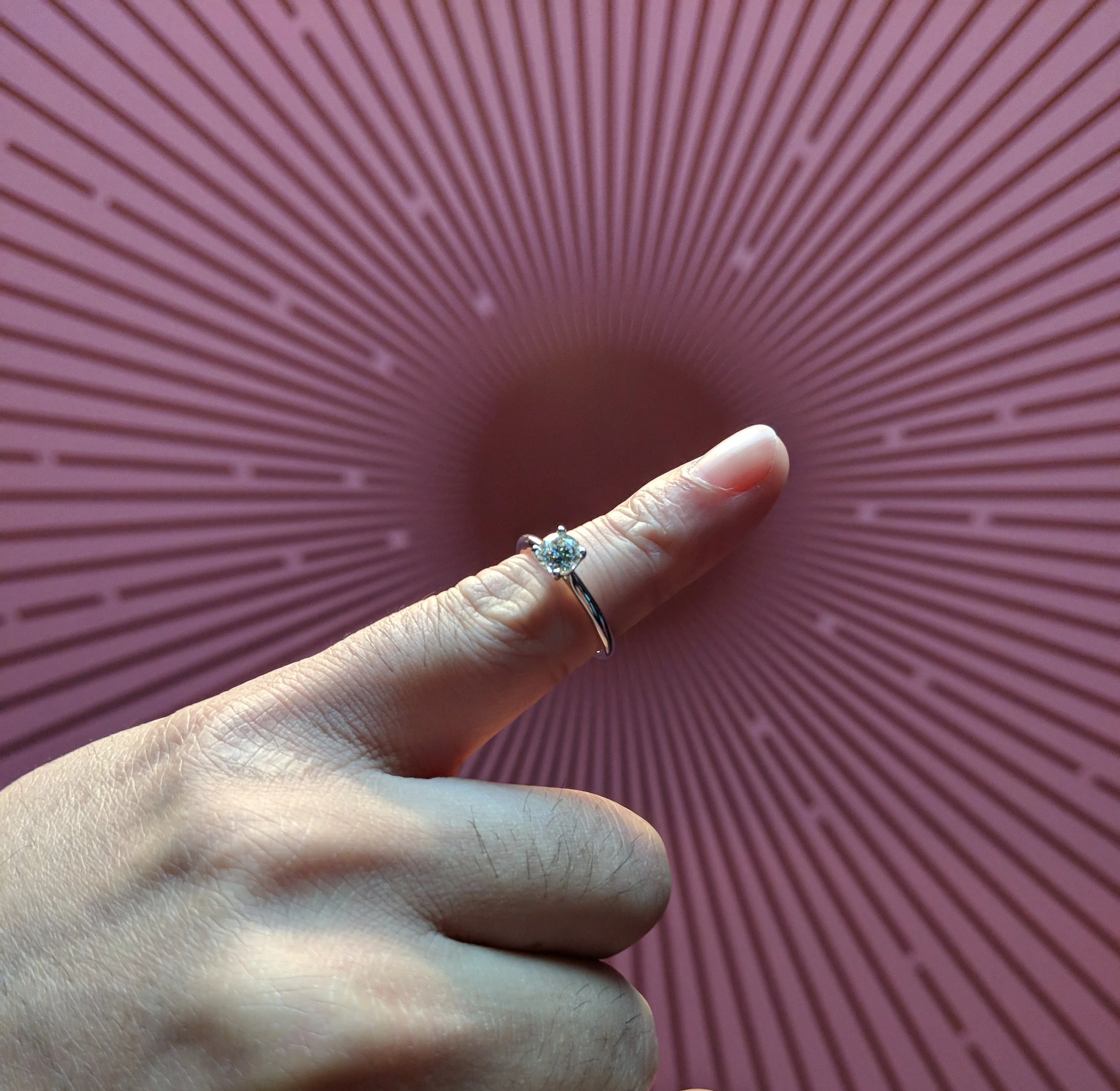 I had the chance to check it out today and it's quite a sight with everything themed chocolate, from chocolate chandeliers to chocolate diamond rings. Dr. Oetker actually had a diamond made from the ashes of one of their Ristorante Cioccolato Pizzas, using a special high pressure, high-temperature oven. Yes, you read that correctly, they made a real diamond from a chocolate pizza. I even got to try it on, under the watchful eye of the security guard.