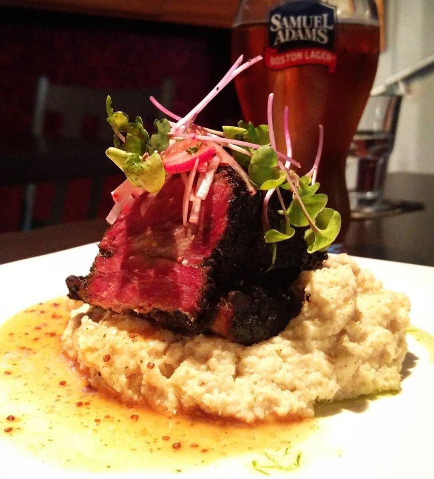 Greenwood Smokehouse on the Danforth was our first stop. They served Smoked Pastrami Short Ribs on mashed cauliflower. Amazingly tender smoked ribs on the bone. I highly recommend this one, tasted great with beer. $15 for Toronto BBQ Week (includes a pint of Samuel Adams Boston Lager)